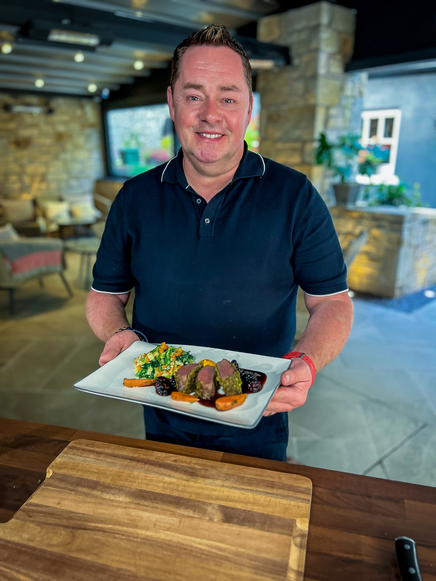 Back home in Blacklion, Neven prepares Crusted Venison with Creamed Cabbage, Blackberry Jus, and Baby Carrots